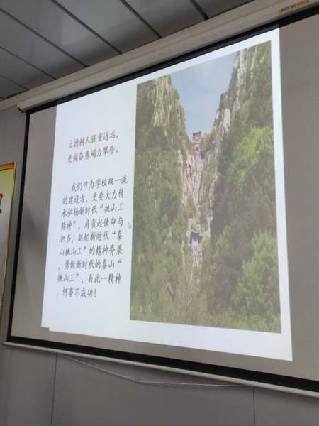 4月23日,基建处党支部邀请马克思主义学院侯爱萍教授做“弘扬新时代泰山“挑山工”精神,肩负起使命与担当”报告。党委常委、副校长嵇景涛、基建处党支部、施工单位党支部和监理单位党支部全体党员参加学习。
