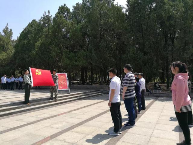 孟良崮战役烈士墓园内,埋葬着华东野战军在孟良崮战役中牺牲的2865名烈士的忠骨,在粟裕将军的墓碑前,全体党员向烈士敬献花篮、鞠躬肃立,寄托对革命先烈的无限哀思和崇高敬意。面对鲜艳的党旗,举起右手“我志愿加入中国共产党,拥护党的纲领,遵守党的章程……”党员同志们再一次发出了铿锵有力的誓言,表达了全体党员同志坚定的理想信念和时刻不忘入党初心、矢志永远为共产主义奋斗终身的坚定决心。