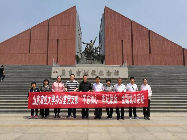 习近平总书记指出:“我们要沿着革命前辈的足迹继续前行,把红色江山世世代代传下去。”为了追忆先烈们的光辉足迹,进一步加强党员党性教育,增强党支部的凝聚力、战斗力,5月19日,学校办公室党支部组织党员赴孟良崮战役纪念馆开展主题党日活动。