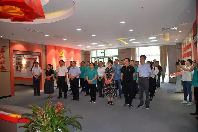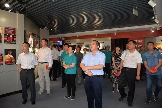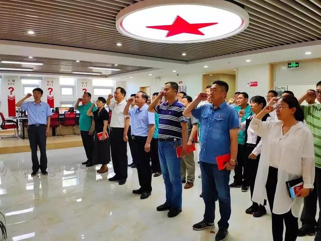 在党员宣誓厅,参加主题党日活动的党员面对鲜红的党旗,举起右手,重温入党誓词。庄重的仪式,严肃的氛围,增强了广大党员干部的党员身份意识,并转化为党的崇高使命永远奋斗的精神力量。