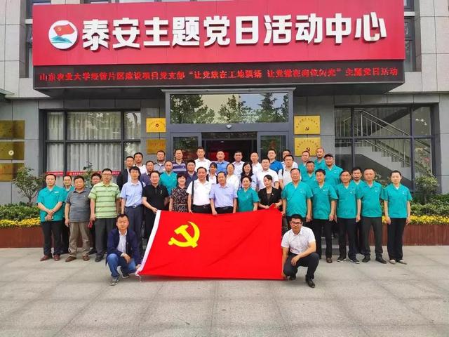 山东农业大学南管委主任申曰江、校直机关党委副书记李萍,北京城建亚泰公司农大项目部经理刘新宇、山水建业公司党支部书记、总经理贺倩分别就本次党日活动交流心得体会。