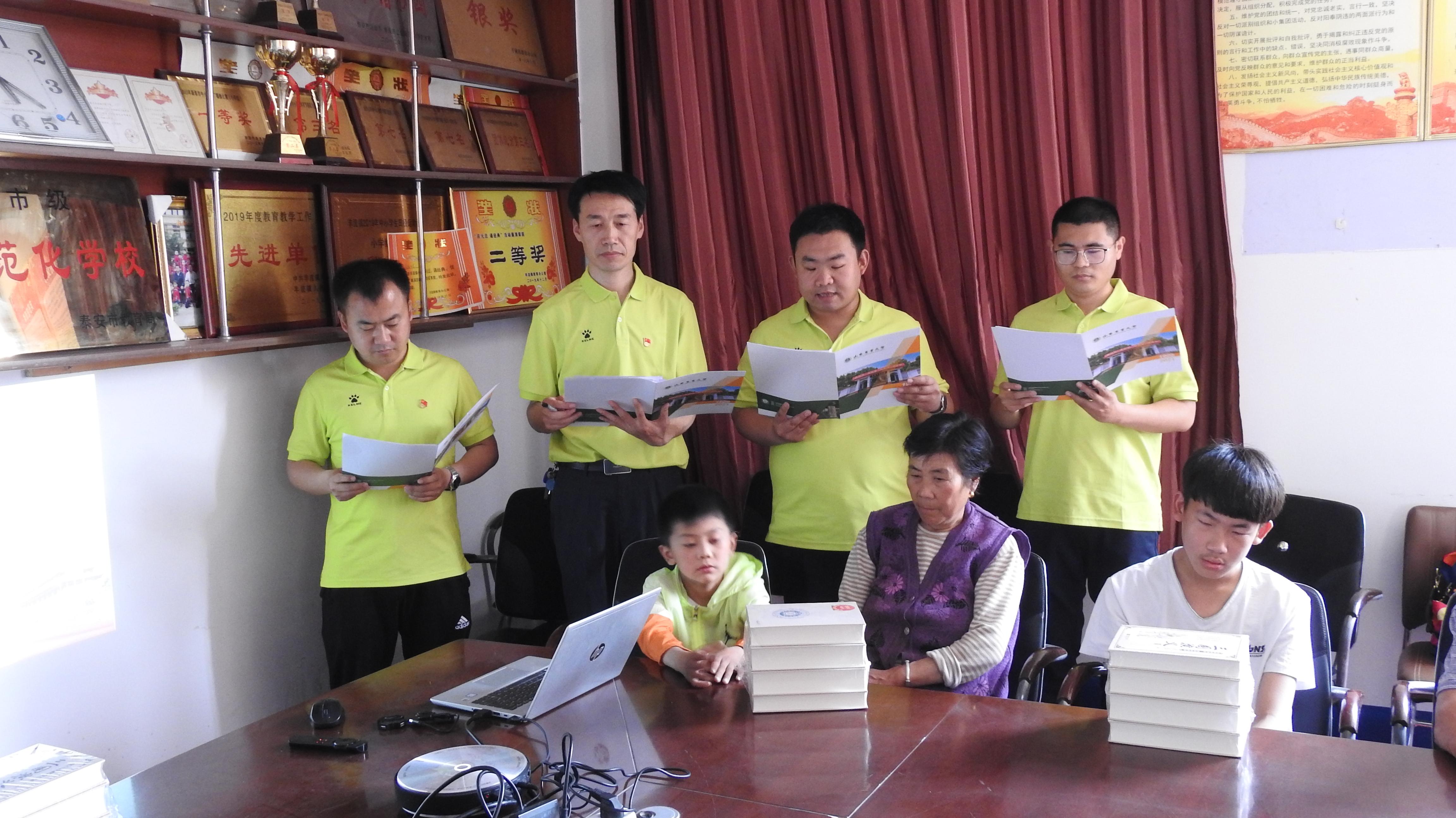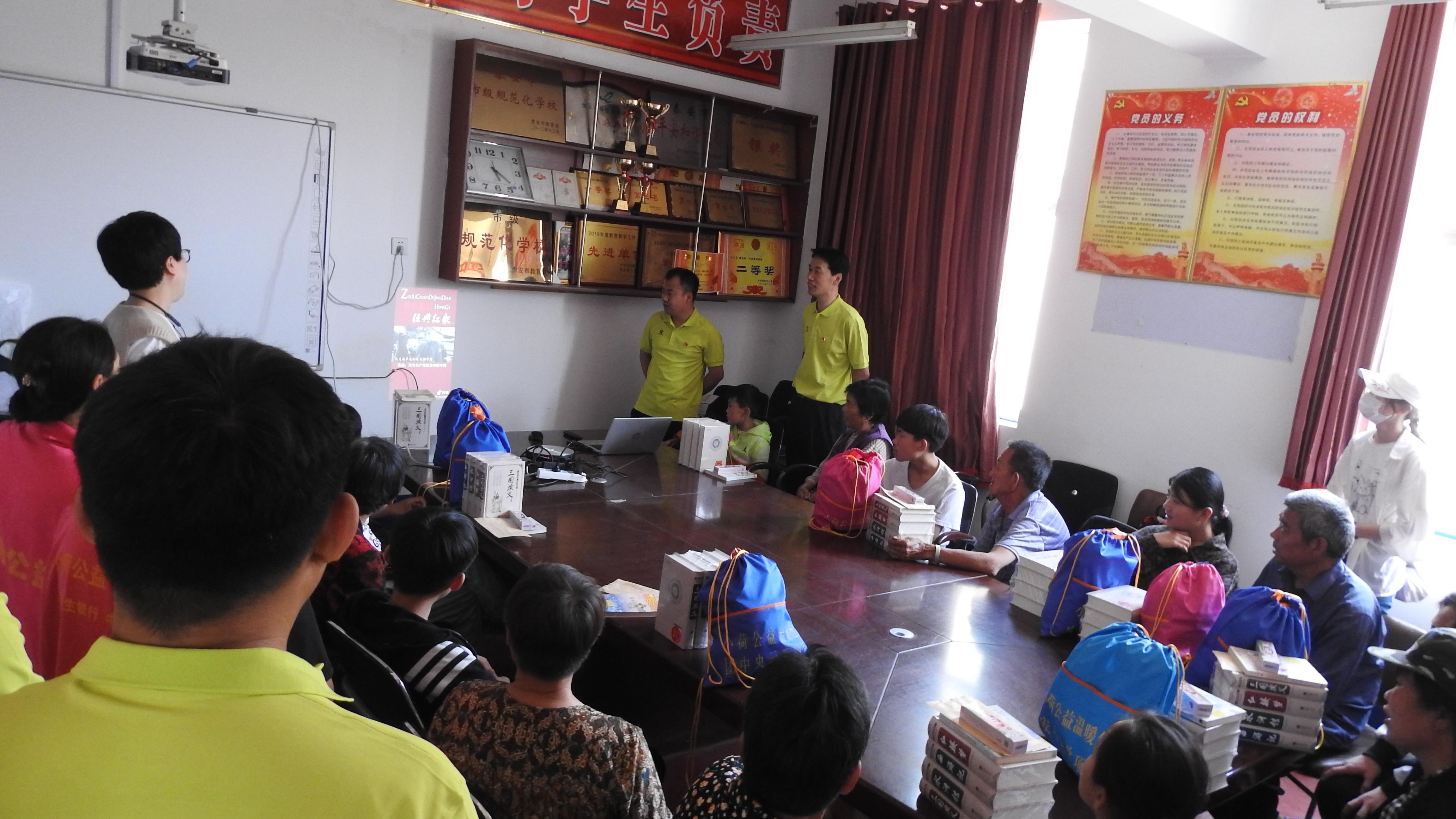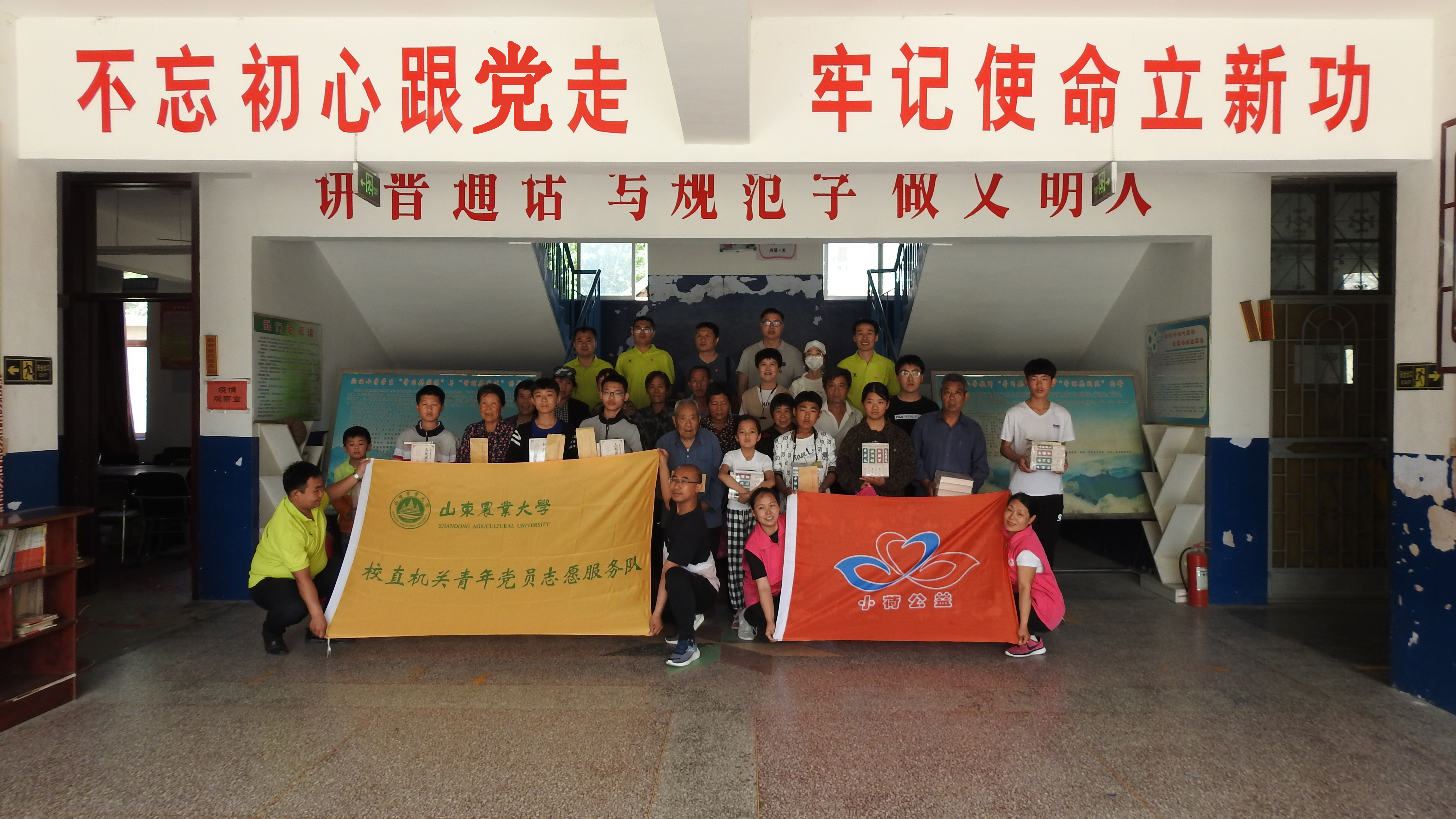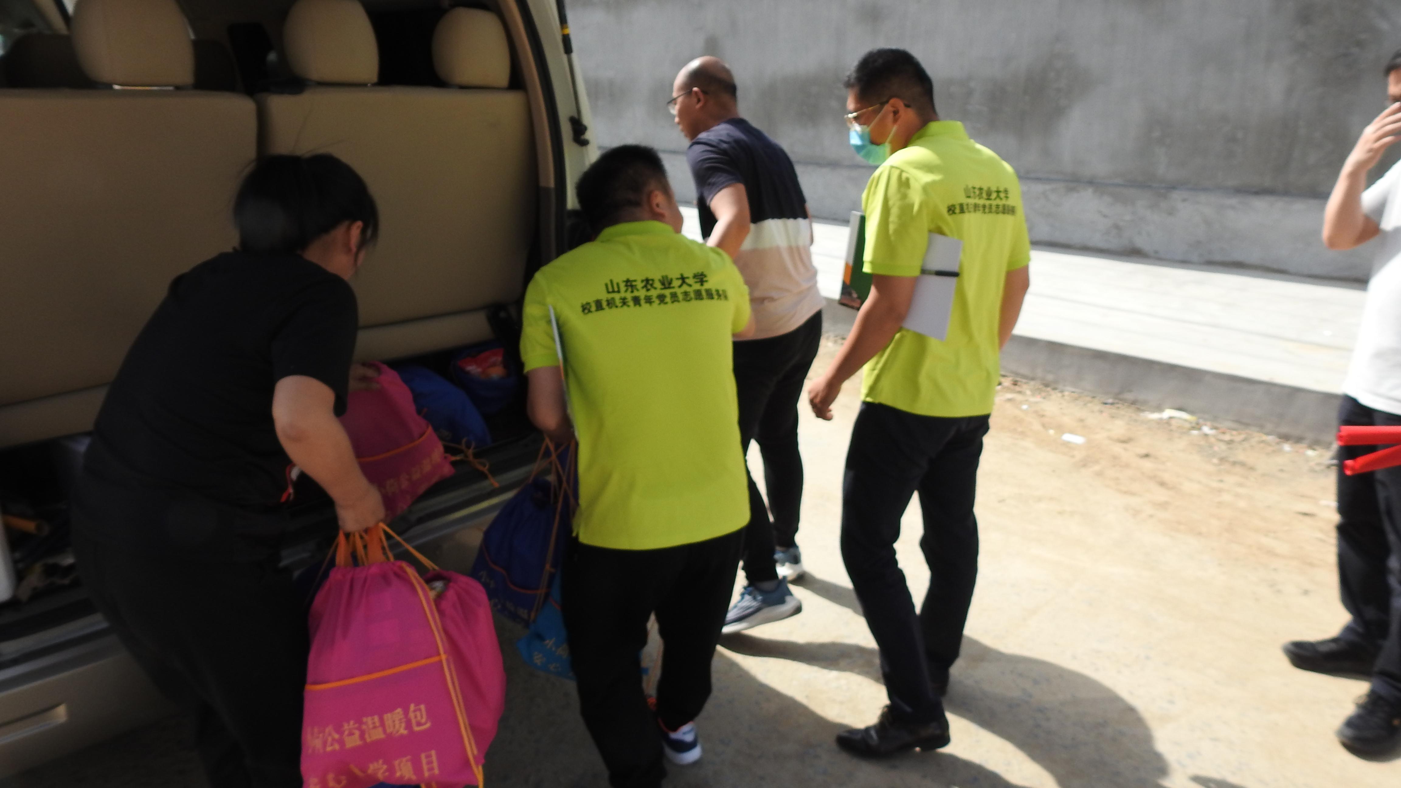 服务队队员与泰山小荷公益志愿者共同来到新泰市羊流镇沟西村,与12名家庭困难学生及家长座谈交流,了解孩子们学习和生活情况,送达助学金和爱心大礼包,捐赠成套文学书籍和学习生活用品,鼓励中小学生们努力学习、战胜困难。