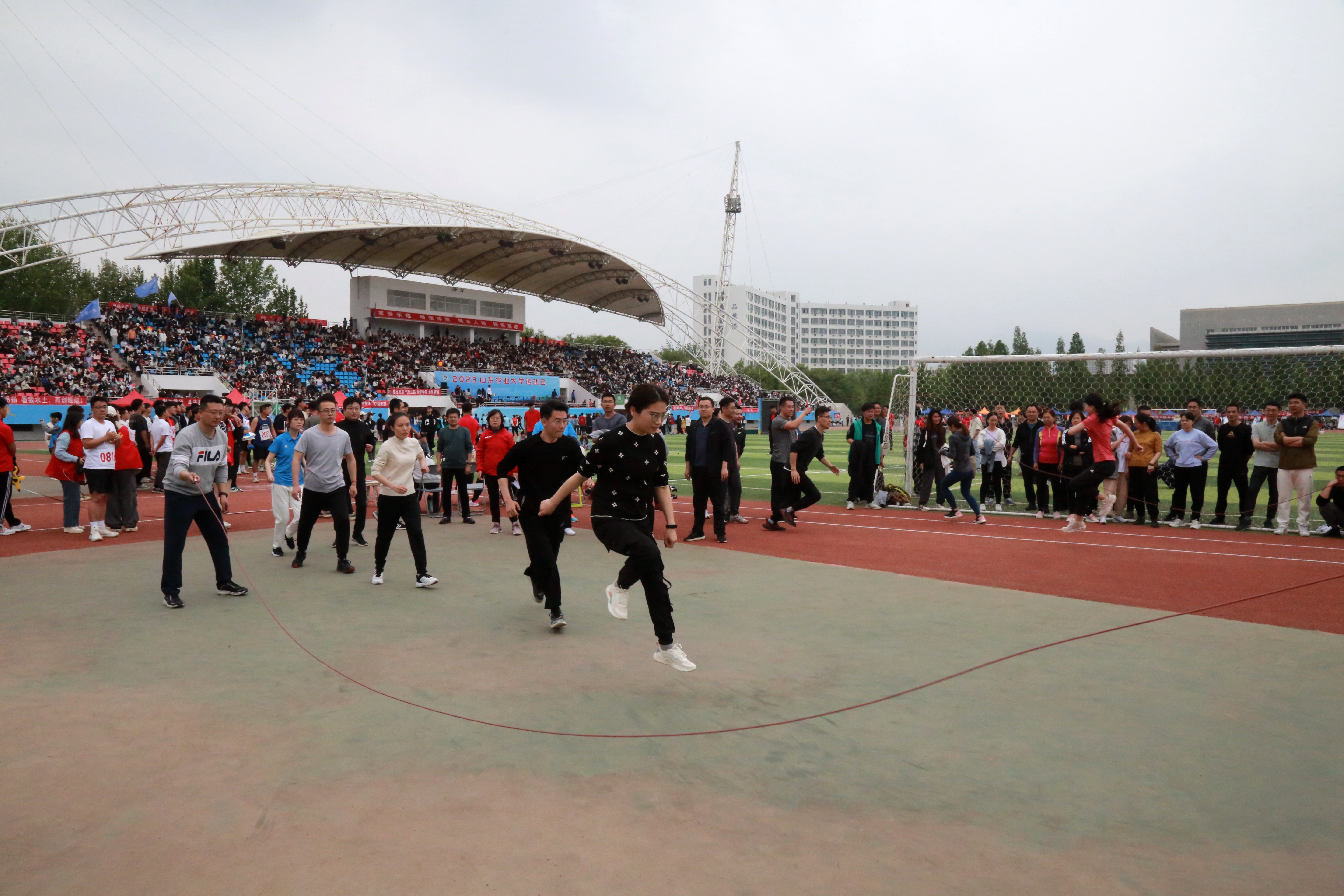 山东农业大学2023年运动会于4月27日至28日在泮河校区运动场隆重举办。机关教职工代表队以229分的总成绩再次获得教工组团体总分第一名。