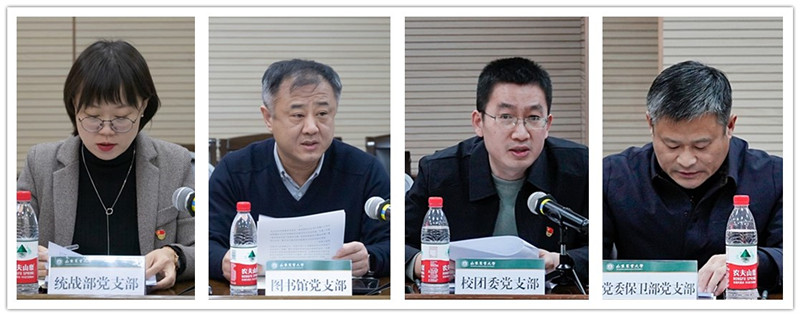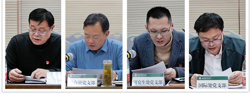 按照学校关于做好2023年度基层党组织书记履行全面从严治党责任和抓党建工作述职评议的2个通知及校直机关党委述职评议方案精神,统战部、图书馆、校团委、保卫处(党委保卫部)、校工会、社合处、研究生处、国际处等8个党支部书记依次现场述职,其他16个党支部书面述职。