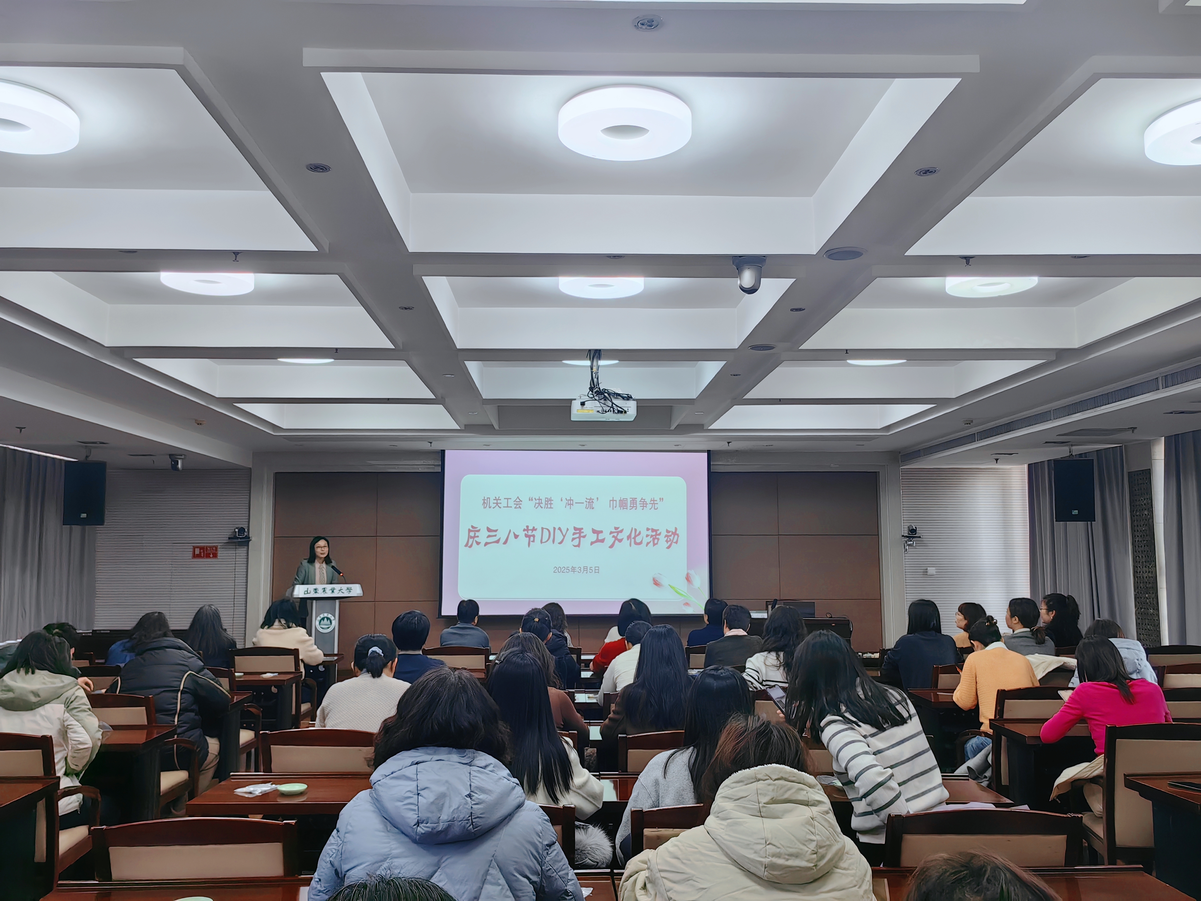 在第115个“三八”国际妇女节来临之际,为进一步丰富女教职工文化生活,3月5日上午,机关工会举办“决胜‘冲一流’,巾帼勇争先”DIY手工文化活动。泰山中学教师秦梅现场讲解并指导制作,机关工会主席杨圣慧主持活动并为女教职工送上节日祝福。