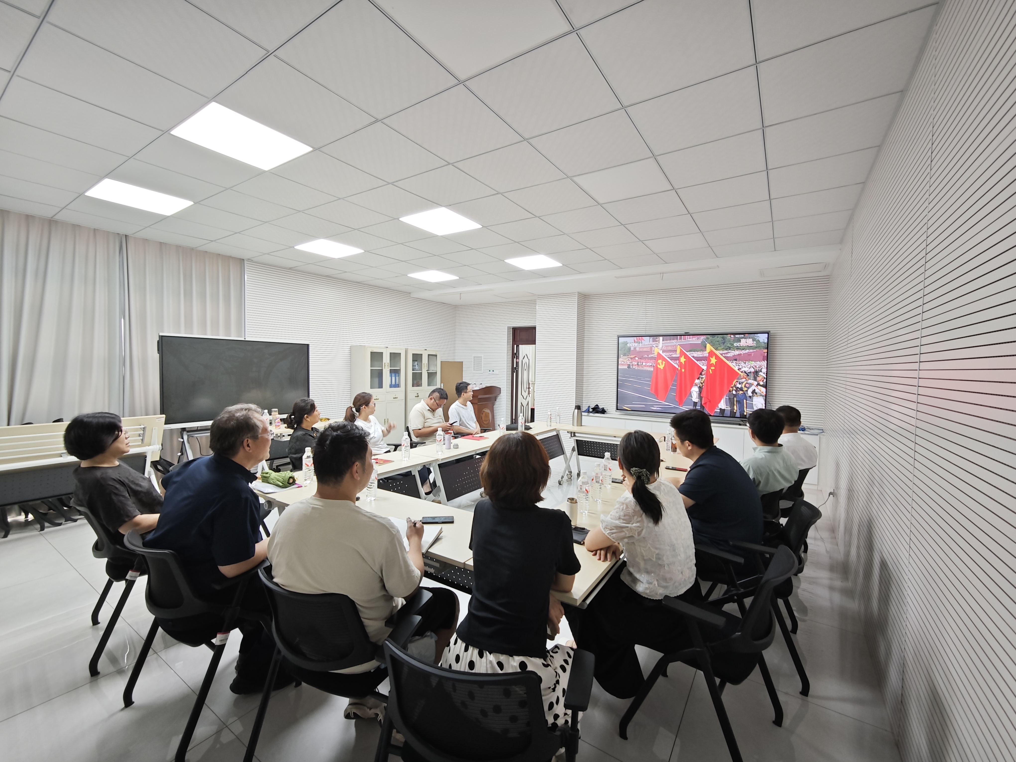 通过观看阅兵仪式,全体同志接受了一次生动的爱国主义教育。随着五星红旗冉冉升起,大家不约而同肃身起立,齐声高唱国歌,向伟大祖国致敬。整齐划一的如铜墙铁壁般的方阵列队、以雷霆万钧之势划破长空的战机编队、如钢铁洪流般的先进装备等等,都让大家深切感受到中国共产党的伟大领导是国家强盛辉煌的核心关键,全体同志的爱国热情和民族自豪感瞬间燃爆。