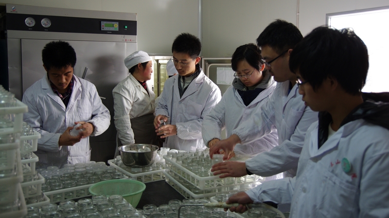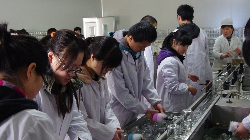 上午9点,讲解人员带领同学们参观蓝莓研发中心及庄园,并且介绍了各个部门及其工作,气氛活跃,大家收获颇丰。在繁育组培中心,同学们在专业人员的指导下,亲自参与培养瓶的正确清洗,培养基的灭菌等基本实验操作。在蓝莓温室,他们参与组培苗的筛选、栽培等技术,极大地锻炼了大家的动手能力。在参观学习过程中,李滨老师结合自身经历,饶有兴致地给在场人员讲解温室大棚的相关知识,使大家对组织培养工业化有了进一步认识。“百奥”团支书张扬参观完后感慨道:“回校后,我们一定把此次活动的收获分享给协会会员,鼓励大家树立自己的目标,不断地去追求,然后挑战自我,实现自我!”