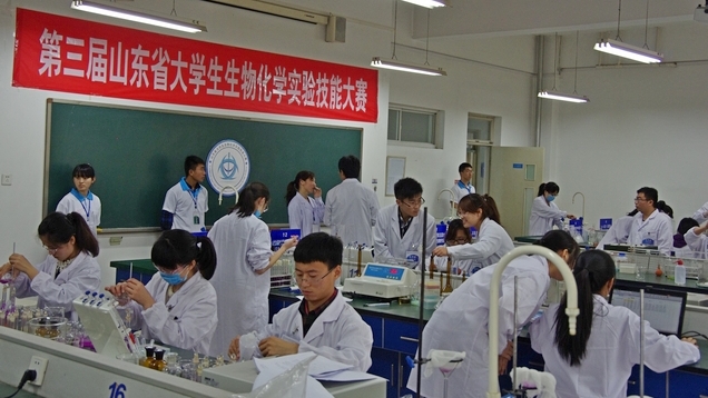 第三届山东省大学生生物化学实验技能大赛,预赛阶段共收到实验设计书210份,其中校内实验设计书81份,包括山东大学、山东科技大学等13所省内高校。设计方案形式新颖、科技创新性强,与日常生活密切相关,涉及面广,包含物质提取、物质检验、含量测定等6大方面。评委经过层层筛选,最终选拔出28件作品进入决赛。在决赛现场,28支优秀队伍、100多名选手精心设计,规范操作,比拼高下。