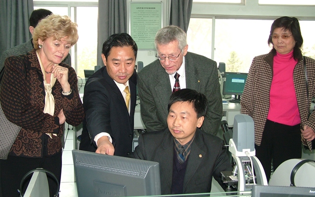 校长温孚江向郝吉斯教授介绍实验中心的情况
