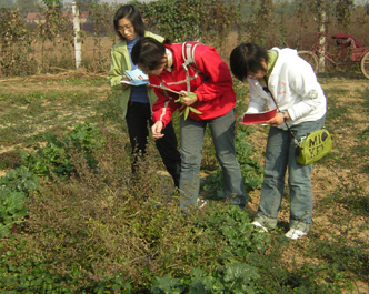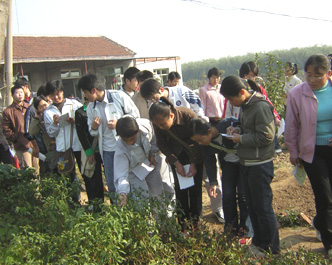 学生进行植物的生长发育调查