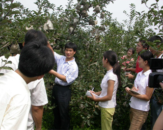 学生在果园基地进行教学实习