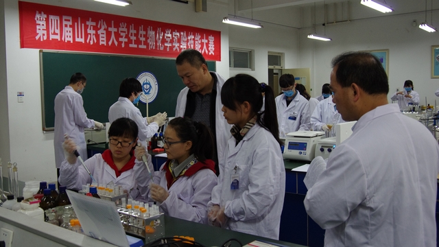 据了解,第四届山东省大学生生物化学实验技能大赛以“探索生命奥妙、勇攀科学高峰”为主题,以“培养创新意识、提升创新能力”为主线,得到了省内外各高校和学生的热切关注,预赛阶段来自全省15所高校的274件作品参与评审,244名指导教师、742名选手参赛,经大赛组委会组织专家进行认真评审,最终有28件作品进入决赛环节。参赛选手们的设计方案形式新颖,科技创新性强,方案选题与生活息息相关,吸引人眼球。最终来自省内11所本科院校、28支优秀队伍、近100名选手经过层层筛选进入决赛。各位参赛选手精心设计、认真准备、规范操作、深刻总结。在决赛中切磋技艺、角逐雌雄。