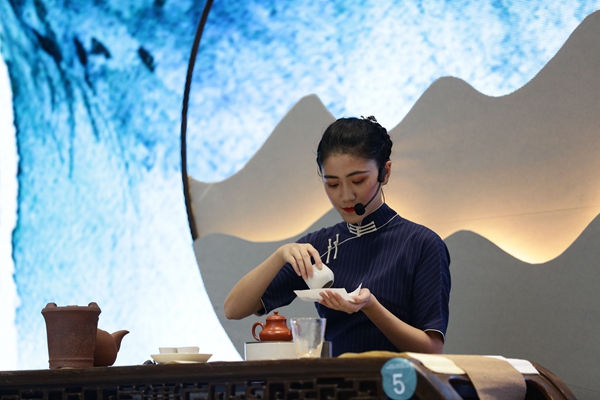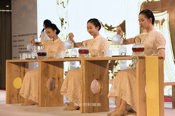 茶艺技能个人赛分两种类型进行考核,选手任选其一。竞赛内容有理论考试、创新茶艺、茶样识别和品饮茶艺,着重考察选手的文化素养、礼仪素养及茶艺水平。来自湖南农业大学茶学专业的堵茜便是个人赛选手中的一员。“这次恰好借着比赛的机会,将常德的文化和武陵红茶推广出去,让更多人知道湖南的茶。”堵茜说道,“也是乡愁的一种寄托。”