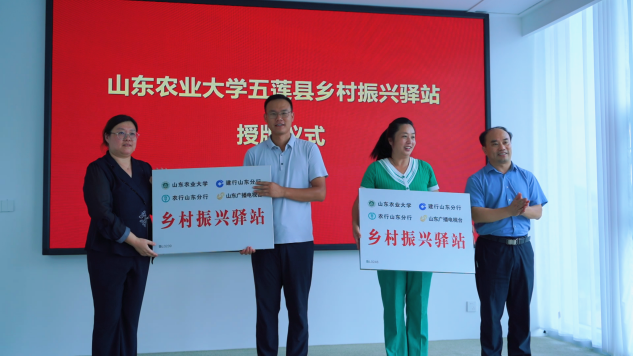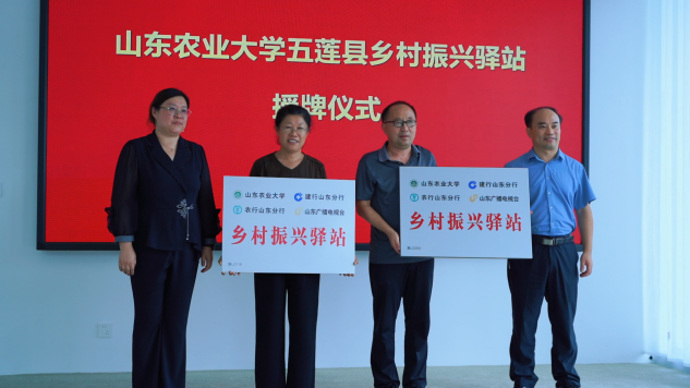 授牌仪式上,公共管理学院副院长杨瑞宣读了五莲县乡村振兴驿站名单,教务处副处长李琳娜、日照市农业科学研究院院长宋百星为乡村振兴驿揭牌。
