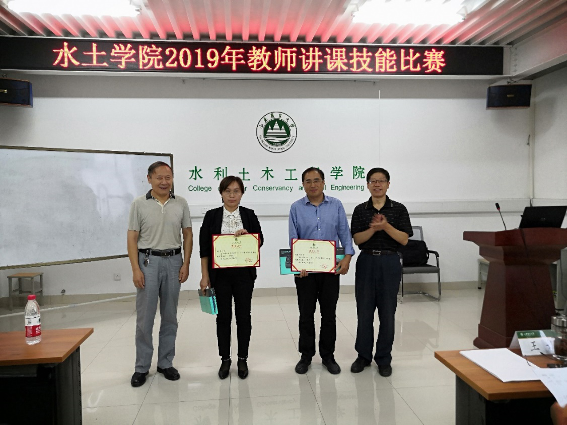 在水土学院,共有6名青年教师参赛,通过教学目标确定、教学内容处理、教学策略设计、教学方法运用和教学效果5个方面的评价,共评选出一等奖2名和二等奖4名。教务处处长谢胜利受邀参加活动,他对此次活动表示了肯定,并提出建议意见,建议学院落实立德树人根本任务,将思政元素、科学精神、人文精神进一步融入课程;落实德智体美劳培养要求,将课程与生产实践经验相融合,提高学生动手实践能力;扎实推进课堂革命,结合“雨课堂”使用,提升课堂教学丰富度;坚持以学生为中心工作理念,提高备课质量。