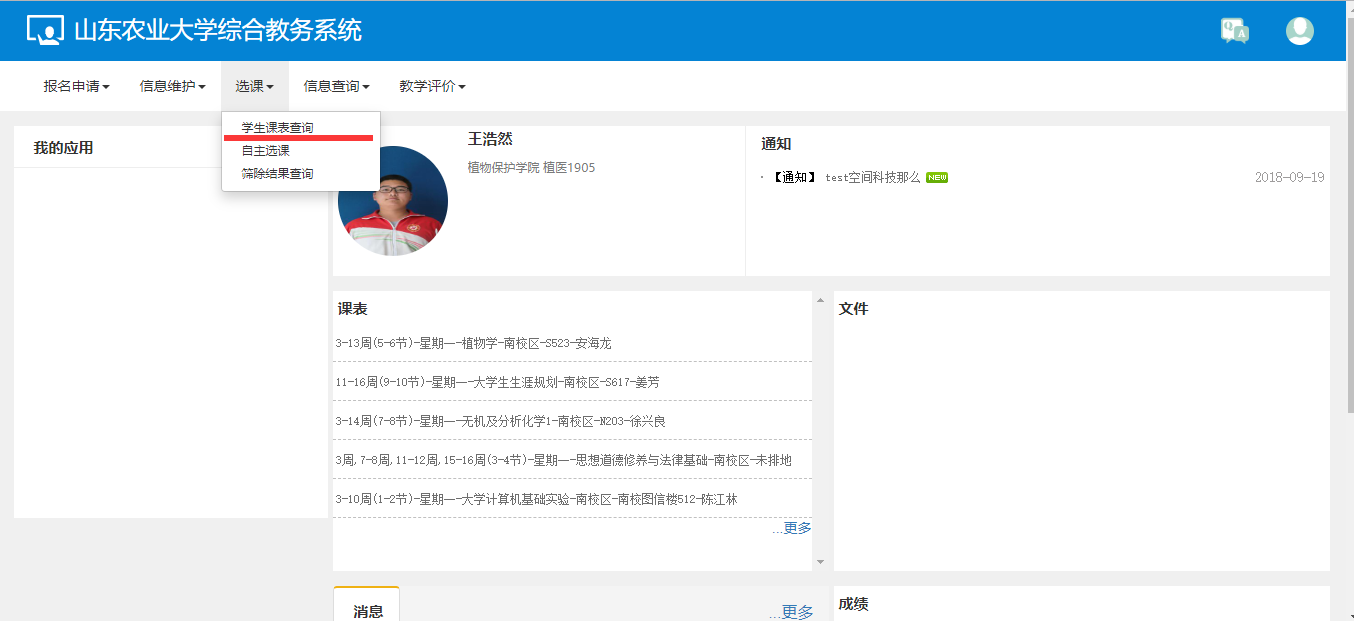 6. 班级课表菜单路径:信息查询—推荐课表打印