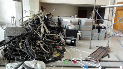 南校区图信楼的空调是2002年南校区建设时安装建设的,历经15年的使用空调系统电路部分老化严重进行处置报废,目前设备已经拆除并且配件已经集中存放,主机在5楼楼顶,需要中标商自行搬运。