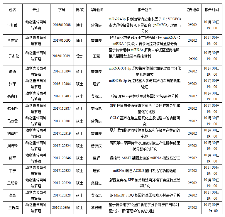 动科学院动物遗传育种与繁殖专业2018年研究生学术报告