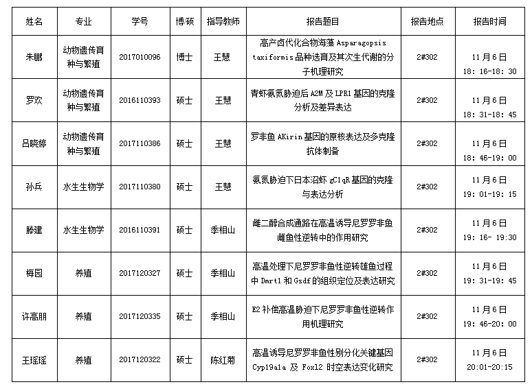 动科学院动物遗传育种与繁殖/水生生物学专业2018年研究生学术报告
