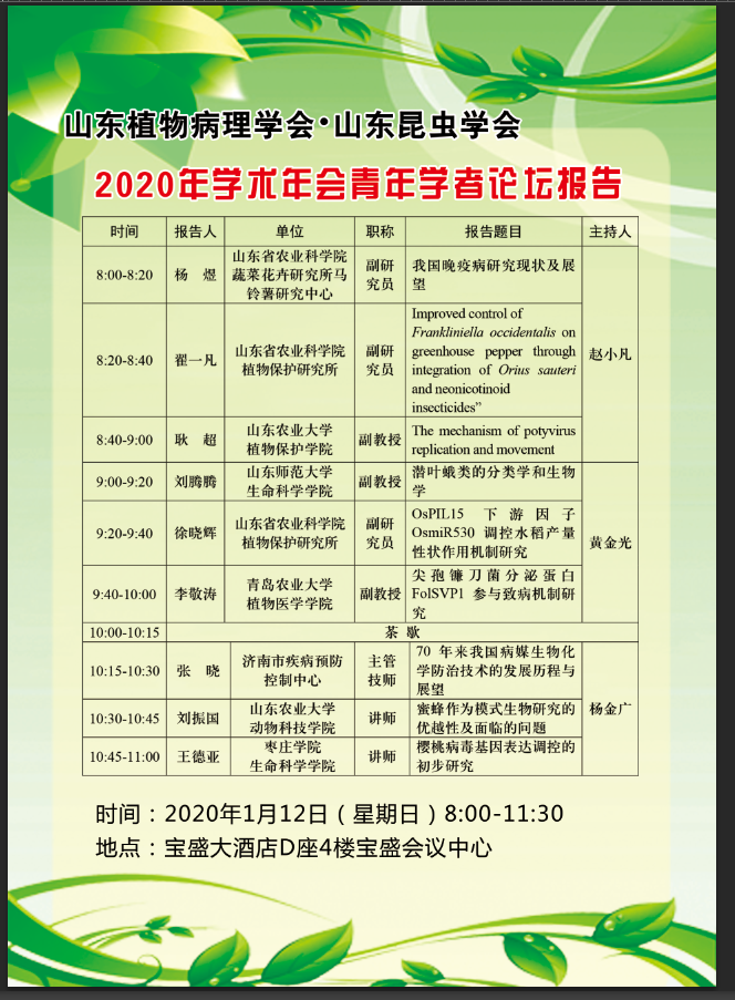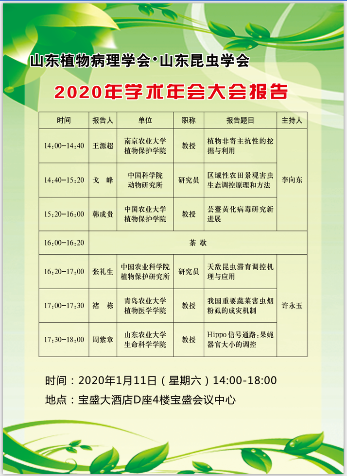 山东植物病理学会、山东昆虫学会2020年学术年会