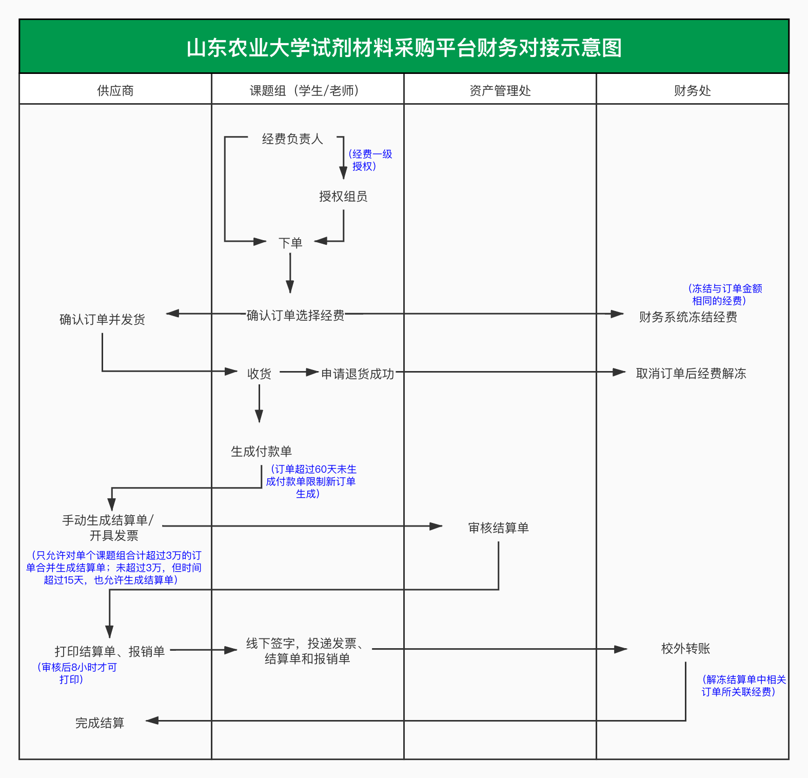 一、从7月21日起,除危化品、农副产品、建筑材料等特殊类型试剂材料按照规定渠道采购外,其他试剂材料采购均须通过“山东农业大学试剂材料采购平台”(以下简称试剂材料平台)实施采购,按照新的报账程序执行。7月21日至31日为试运行期,7月21日前,未通过试剂材料平台已完成采购的,7月31日前按照原规定报账结算。