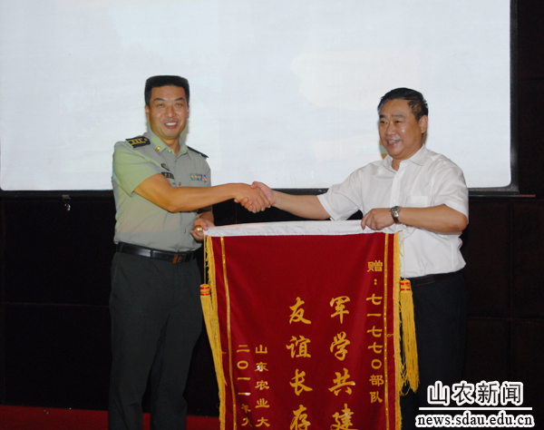秦道平赞赏地说,山东农大历史悠久,治学严谨,培养了各行各业的优秀人才,同时也为部队输送了优秀兵源。今年71770部队优秀大学生保送考核第一名,就是农大的毕业生。