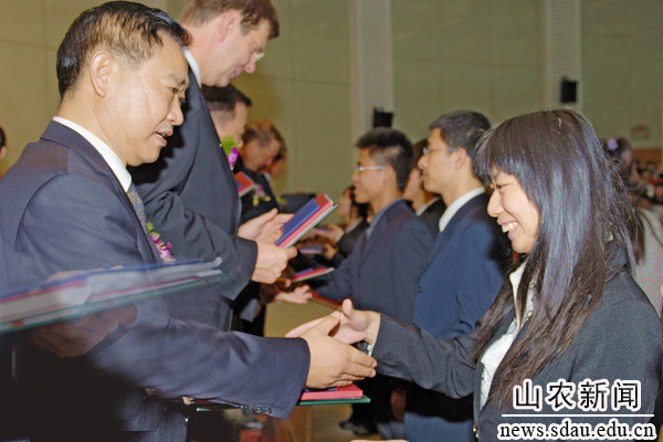 山东农业大学校长温孚江,副校长孙永华,德国埃森经济与管理应用技术大学校长海米尔,德意志学术交流中心北京办事处主任哈森•拜戈,以及学校有关部门和学院负责同志出席毕业典礼,并向同学们颁发毕业证书和纪念册。