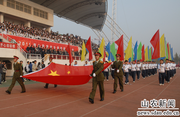 10月29日至30日,山东农业大学2011年田径运动会在南校区举行,全校1500多名教职工、3000多名学生参加了89个项目的比赛,展示了师生员工昂扬向上的精神风貌和健康体魄。