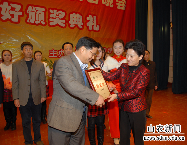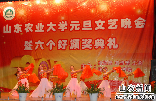12月28日,山东农业大学庆祝2012年元旦晚会暨第二届“身边的感动――六个好”颁奖典礼在西礼堂隆重举行,丰富多彩的联欢节目和喜庆盛大的颁奖典礼为农大师生送上了新年的美好祝愿。山东省社科联副主席周忠高,山东艺术学院党委书记任运河,学校领导邢善萍、张良成、张敬和、孙永华、张宪省、董新胜、车先礼、朱莉、高东升出席晚会及颁奖典礼,与全校师生同喜同乐共迎新春。