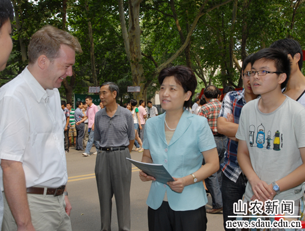 校党委书记邢善萍与参加招生咨询工作的我校外籍教师交谈
