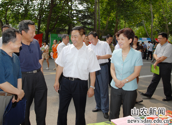 6月25日,我校与泰安市联合举办的“2012年学校开放日暨泰安市招生咨询会”火爆异常,来自省内外的130余所高校参加了本次活动,约2万名考生和家长来校就高考升学志愿填报等问题进行现场咨询。上午10时许,学校领导邢善萍、温孚江、张敬和、孙永华、车先礼、朱莉、高东升和泰安市教育局领导姚霆、刘应新、宋有祥一同来到咨询现场了解考生需求和学校开放日情况,并对做好开放日各项工作提出要求。