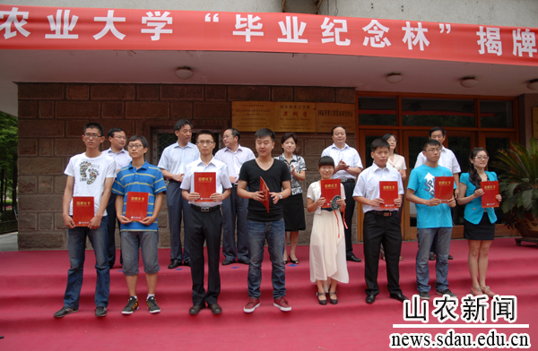 6月28日,山东农业大学2012年“毕业纪念林”揭牌仪式在园艺学院办公楼附近举行,党委书记邢善萍、副校长车先礼及学校有关部门负责人、各学院分管学生工作的党委副书记、毕业纪念树捐赠代表、班级联络员代表和学生代表出席揭牌仪式。与会领导为毕业纪念树捐赠代表颁发捐赠证书。