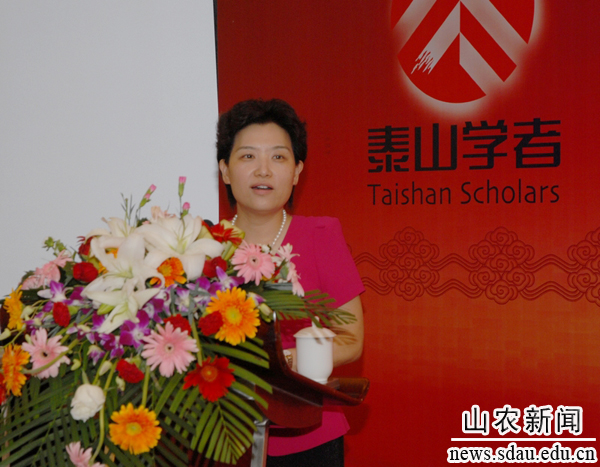 邢善萍代表山东农业大学对大家的到来表示热烈欢迎,并简要介绍学校的办学情况。她说,自我省实施“泰山学者”工程以来,学校抓住机遇,大力实施人才强校工程,围绕“建设农业科学优势突出、生命科学特色鲜明高水平大学”的奋斗目标,依托国家重点实验室等高端平台,紧扣需求,以发展的眼光和开放的胸怀,吸纳延揽具有国际竞争力的海内外优秀人才。以“泰山学者”为代表的高层次人才的加入,有力地促进了学科和队伍建设。