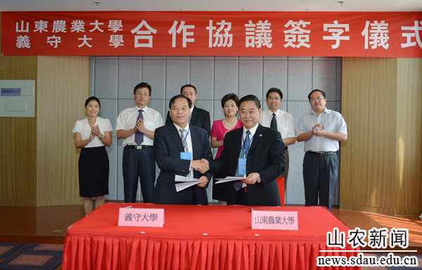 论坛期间,山东农业大学与义守大学签署学术合作交流协议,温孚江和萧介夫分别代表各自学校在协议书上签字。根据协议,双方将鼓励教师、院系开展学术交流与合作,相互邀请师生从事学术访问、讲学和研修活动,参与学术研讨及其他与专业学术相关的会议。