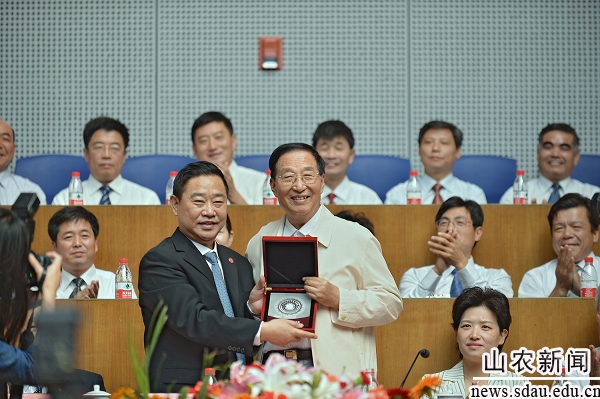校长温孚江为我校首届杰出校友奖获得者李振声院士颁发奖章
