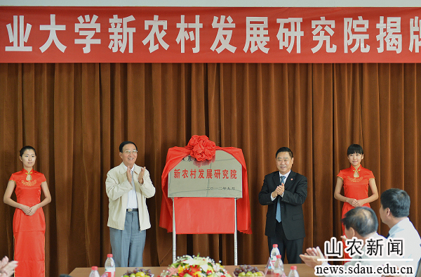山东农业大学党委书记邢善萍、山东省科技厅副厅长郭九成先后致辞,李振声院士和温孚江校长为新农村发展研究院揭牌。副校长董树亭主持揭牌仪式。