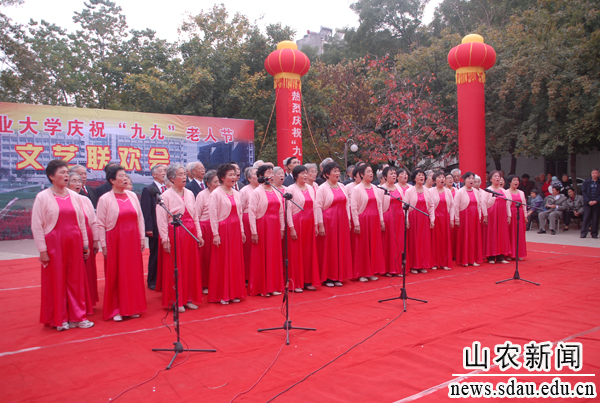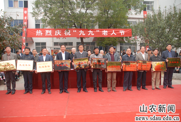 10月23日下午,山东农业大学庆祝“九九”老人节文艺联欢会在夕阳红广场举行,校领导邢善萍、张敬和、孙永华、董树亭、董新胜、车先礼、朱莉、嵇景涛,各单位、各部门负责人和离退休教职员工欢聚一堂,共庆老人节。联欢会前,举行了颁奖仪式,张敬和宣读表彰决定,邢善萍等为获得中国老教授协会“老教授科教工作优秀奖”的孙兰珍教授和学校离退休干部职工工作先进集体颁奖。