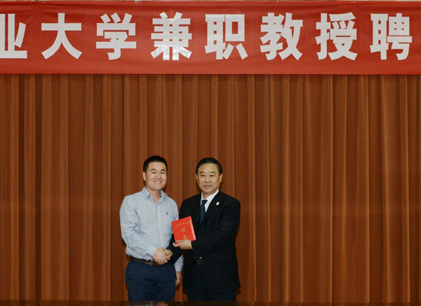 温孚江为宋仲伟颁发山东农业大学兼职教授聘书