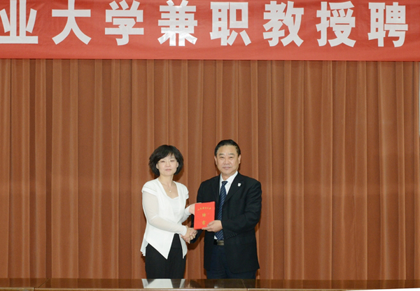 温孚江为姜春玲颁发山东农业大学兼职教授聘书
