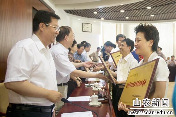 6月26日,教育部隆重表彰2012-2013年度毕业生就业典型经验高校50强。教育部副部长刘利民出席会议并讲话,总结宣传工作领导小组成员、50所年度就业典型经验高校及部分省市毕业生就业主管部门负责同志参加会议。我校党委书记邢善萍代表山东农业大学领奖。刘利民为邢善萍颁奖。
