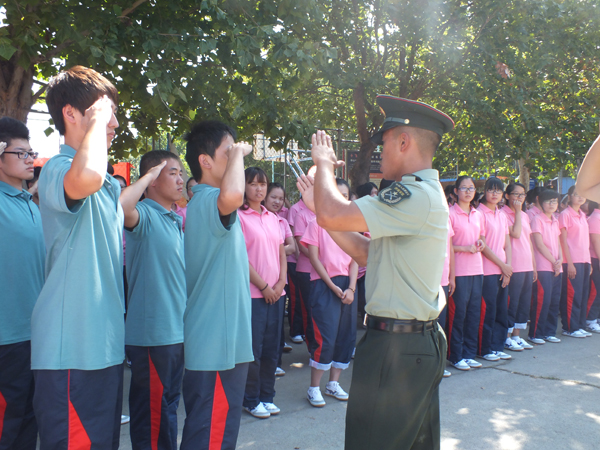 教官耐心为同学纠正敬礼动作(文法学院供稿)