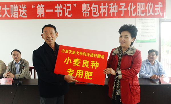 9月16日,我校向东平戴庙乡“第一书记”帮包村赠送小麦良种7500公斤和小麦专用肥料37500公斤。学校党委书记邢善萍、副校长车先礼、东平县委书记赵德健,学校组织部、科技处、农大肥业负责人,戴庙镇和三个帮包村干部群众代表参加捐赠仪式。