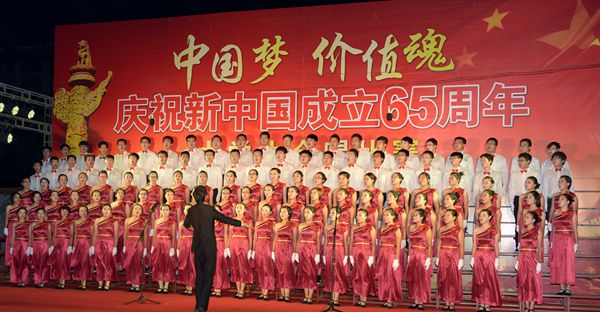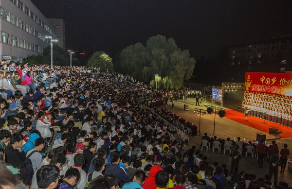 9月29日晚,学校庆祝新中国成立65周年“中国梦・价值魂”大学生合唱比赛在东校区青年广场举行。学校领导邢善萍、孙永华、张宪省、车先礼、朱莉、嵇景涛,以及各部门、各学院的负责人、全体学生工作人员与2014级新生欢聚一堂,共同观看比赛。