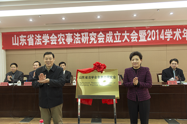 12月27日,山东省法学会农事法研究会成立暨2014年学术年会在农大召开,山东农业大学党委书记邢善萍、副校长张宪省,省人大常委会委员、法工委主任温守信,省人民政府法制办公室副主任李春田,省国土资源厅副厅长王玉志,省法学会主任明珠等出席会议。会议由中国海洋大学法政学院院长徐祥民教授主持。近百位会员代表参加会议。