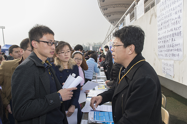 3月15日上午,南校区体育场里人头攒动、热闹非凡,由山东省人力资源和社会保障厅主办、山东农业大学承办的山东省2015年农林水类毕业生就业市场在这里举行。来自全省17个地市以及北京、上海、天津、吉林、辽宁、江苏、安徽、河北、河南、湖南、浙江、四川、广东、广西、新疆等15 个省市的721家用人单位到现场招聘毕业生,提供工作岗位2万余个。省内外多所高校的2万余名应届和往届毕业生、非毕业生参加和观摩了此次就业市场。