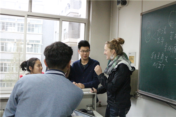 笃“食”好学:课间宝贵不浪费――中英合作食品质量与安全学生与外教交流