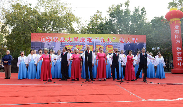 10月20日,学校在夕阳红广场举办庆祝“九九”老人节文艺联欢会。学校领导徐剑波、温孚江、董新胜、车先礼、张宪省、嵇景涛、吴衍涛,各单位、各部门主要负责人和离退休教职工欢聚一堂,共庆老人节。