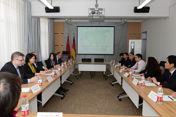 10月21日,德国FOM大学总监白潇乐、副校长豪雨珀、海纳曼,FOM中国项目代表陈晓莉、德中科技学院院长柳林等来校访问,就下一步深化两校交流与合作展开商讨。党委书记徐剑波、校长温孚江分别会见白潇乐一行,副校长张宪省代表学校与德方沟通洽谈,国交学院、国际交流处有关人员参加。