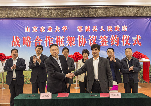 11月5日,山东农业大学与郓城县人民政府签订战略合作框架协议。校长张宪省、副校长高东升,菏泽市副市长侯婕,郓城县委副书记、县长谷永强,县委副书记孙迁国、副县长孙兆同,山东农业大学有关部门和学院的负责同志,菏泽市、郓城县有关部门负责同志参加了签约仪式。