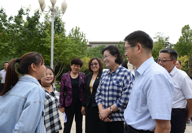 9月27日下午,省政协副主席、党组副书记吴翠云一行来到山东农业大学,就“民族团结进步创建活动进学校”开展调研,校长张宪省、党委副书记朱莉陪同吴翠云与少数民族学生交流,参观校史馆。